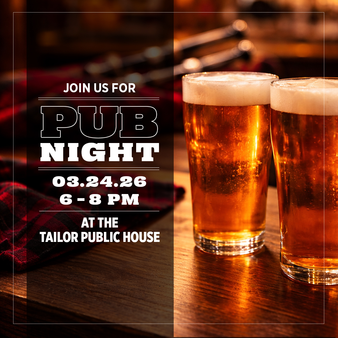 Come say hello and raise a glass with your fellow club members at The Tailor Public House.